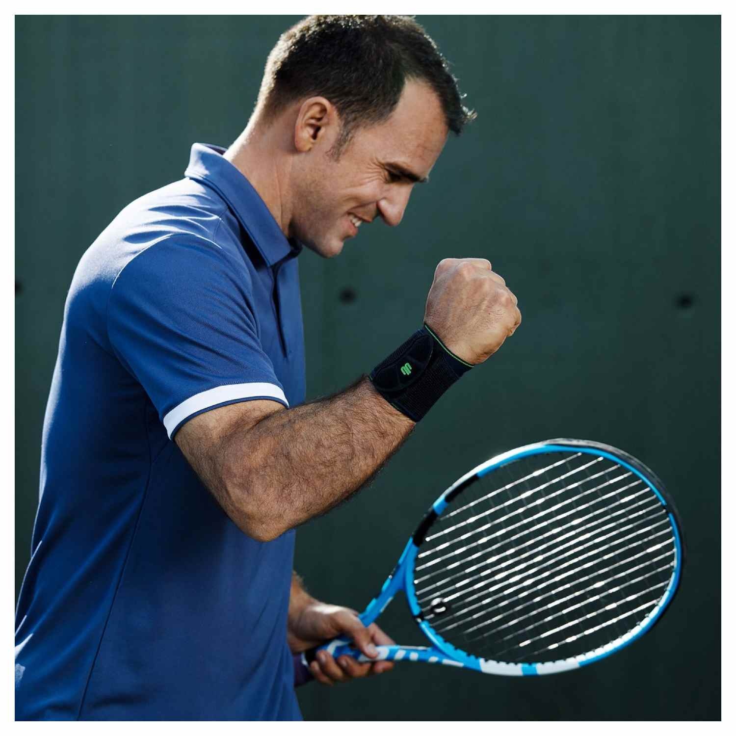 Che tu stia servendo un ace o eseguendo un rovescio incrociato, il Bauerfeind Sports Wrist Strap si adatta perfettamente al tuo polso, assicurando che ogni movimento sia supportato senza compromettere la mobilità.