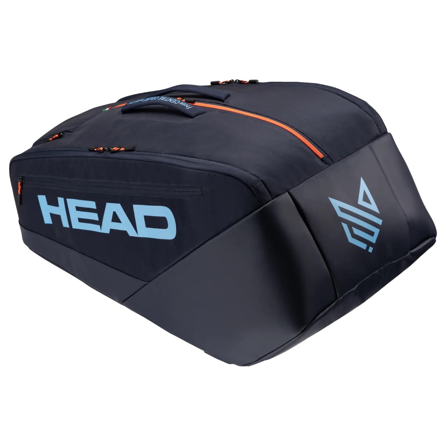 Realizzata in blu, colore nazionale dell’Italia, questa borsa da tennis Head si distingue per i dettagli personalizzati di Sinner: il celebre logo a forma di volpe, la bandiera italiana, e la zip arancione che richiama il suo iconico colore di capelli. Il design esclusivo è arricchito dalla scritta “From Centre Court with love” e da dettagli interni con piccole volpi, simbolo del soprannome del campione.