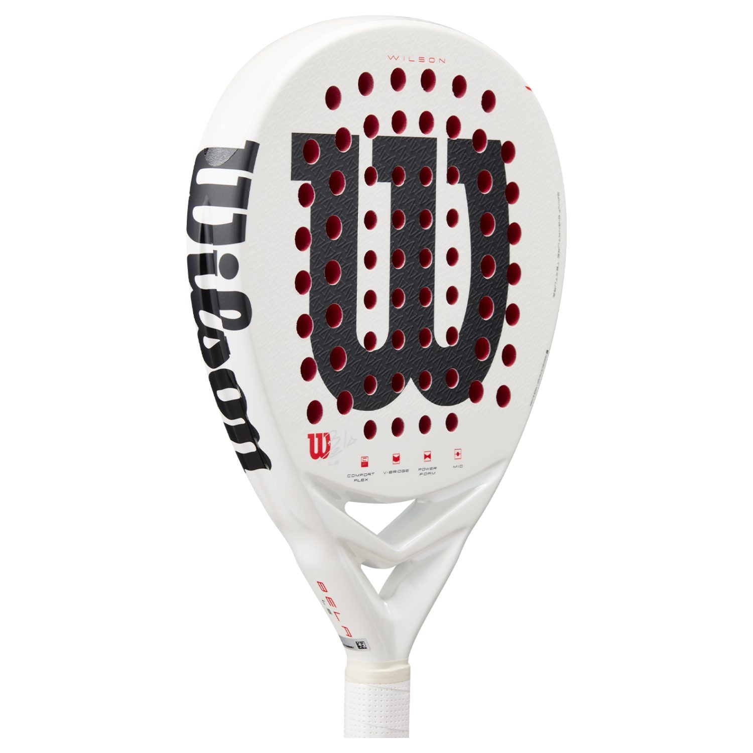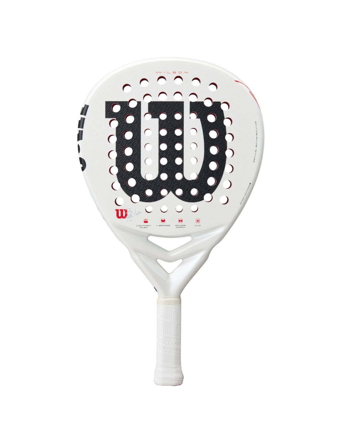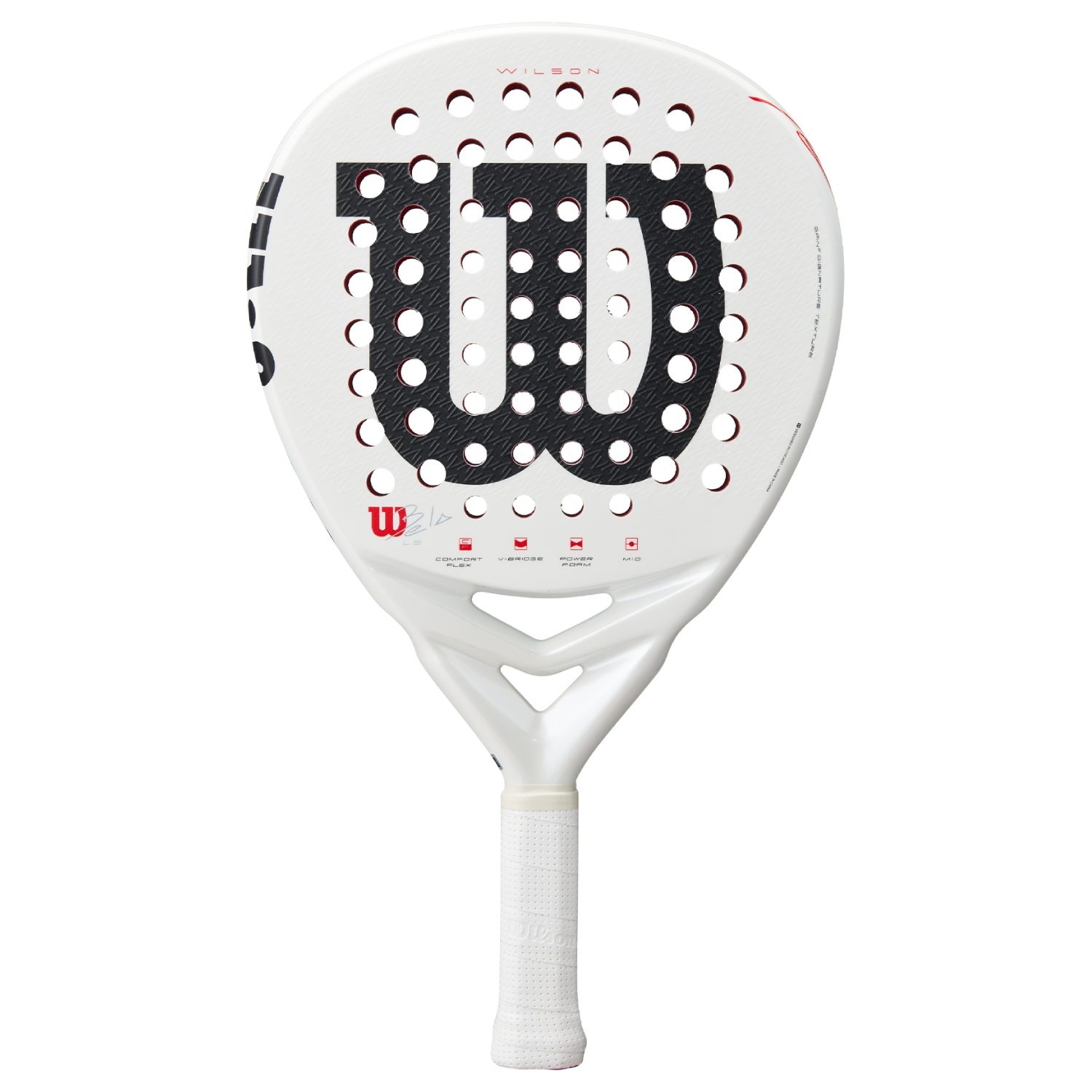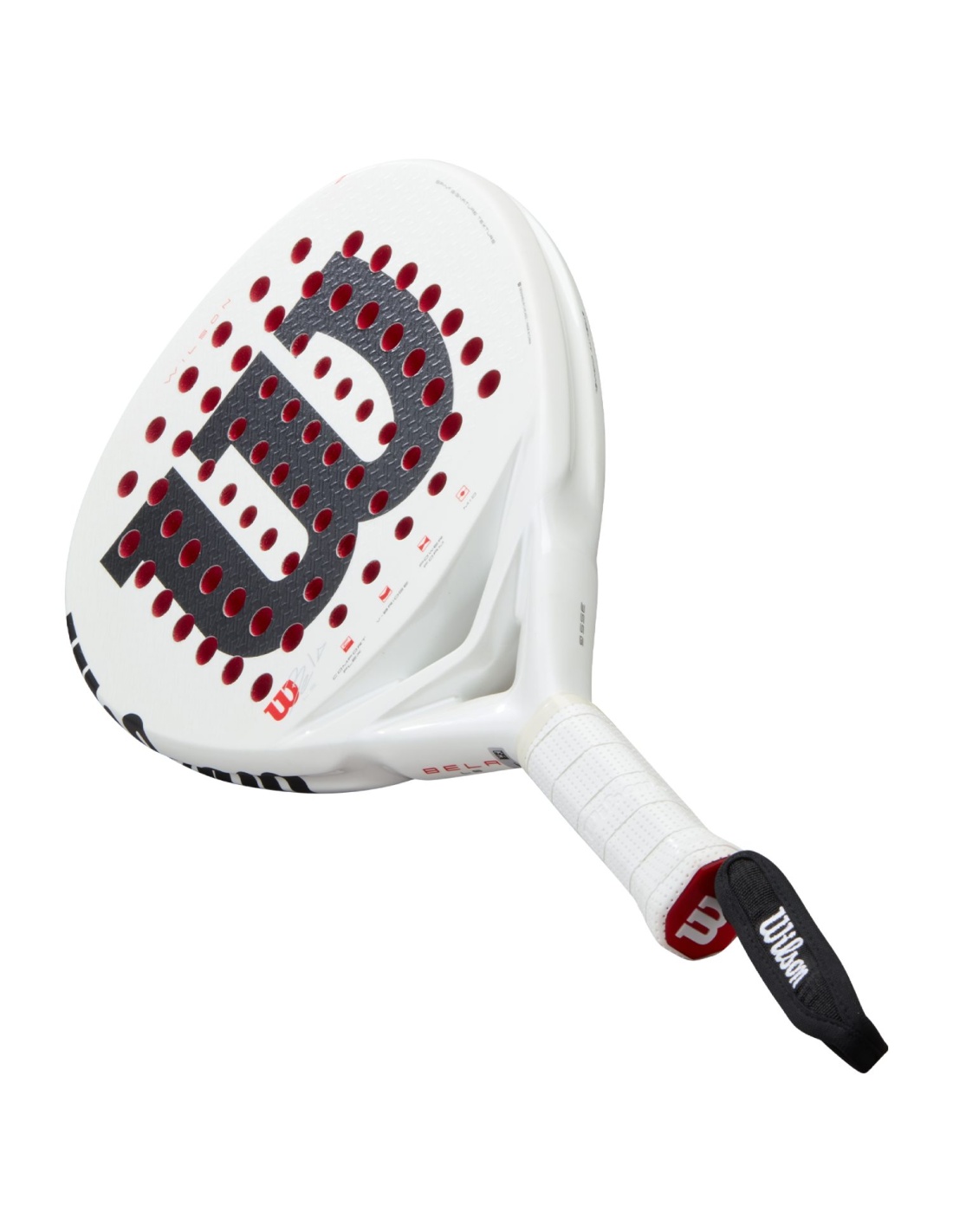 La Wilson Bela LS V3 (2025) è la racchetta da padel leggera e maneggevole pensata per chi vuole potenza immediata senza rinunciare a controllo e comfort: con un peso intorno ai 355 g e profilo da 38 mm, la forma diamante spinge nei colpi d’attacco ma resta docile nelle volée e nelle uscite di parete grazie a uno sweet spot ottimizzato; il nucleo Power Foam assorbe le vibrazioni e regala un tocco elastico e confortevole, mentre la fibra di carbonio intrecciata sulla superficie incrementa stabilità, reattività e durabilità per mantenere una traiettoria tesa anche sotto pressione; la distribuzione fori ottimizzata uniforma la risposta su tutto il piatto migliorando direzionalità e precisione, il Grip Shock Shield aumenta l’aderenza e riduce l’affaticamento mano–avambraccio, e la protezione integrata del telaio preserva la racchetta da urti e abrasioni tipiche del gioco intenso; sviluppata insieme a Fernando Belasteguín, con firma e motto “Un Belasteguín mai si arrende” sul cordino di sicurezza, unisce identità estetica (bianco con dettagli neri e rossi) e funzionalità reale per lo stile offensivo e dinamico dei giocatori intermedi/avanzati che cercano un equilibrio concreto tra spinta, controllo e comfort; se desideri aggiungere più velocità di braccio e precisione nelle chiusure senza perdere sensibilità sul corto, la Wilson Bela LS V3 2025 è la scelta naturale per elevare il tuo livello partita dopo partita.