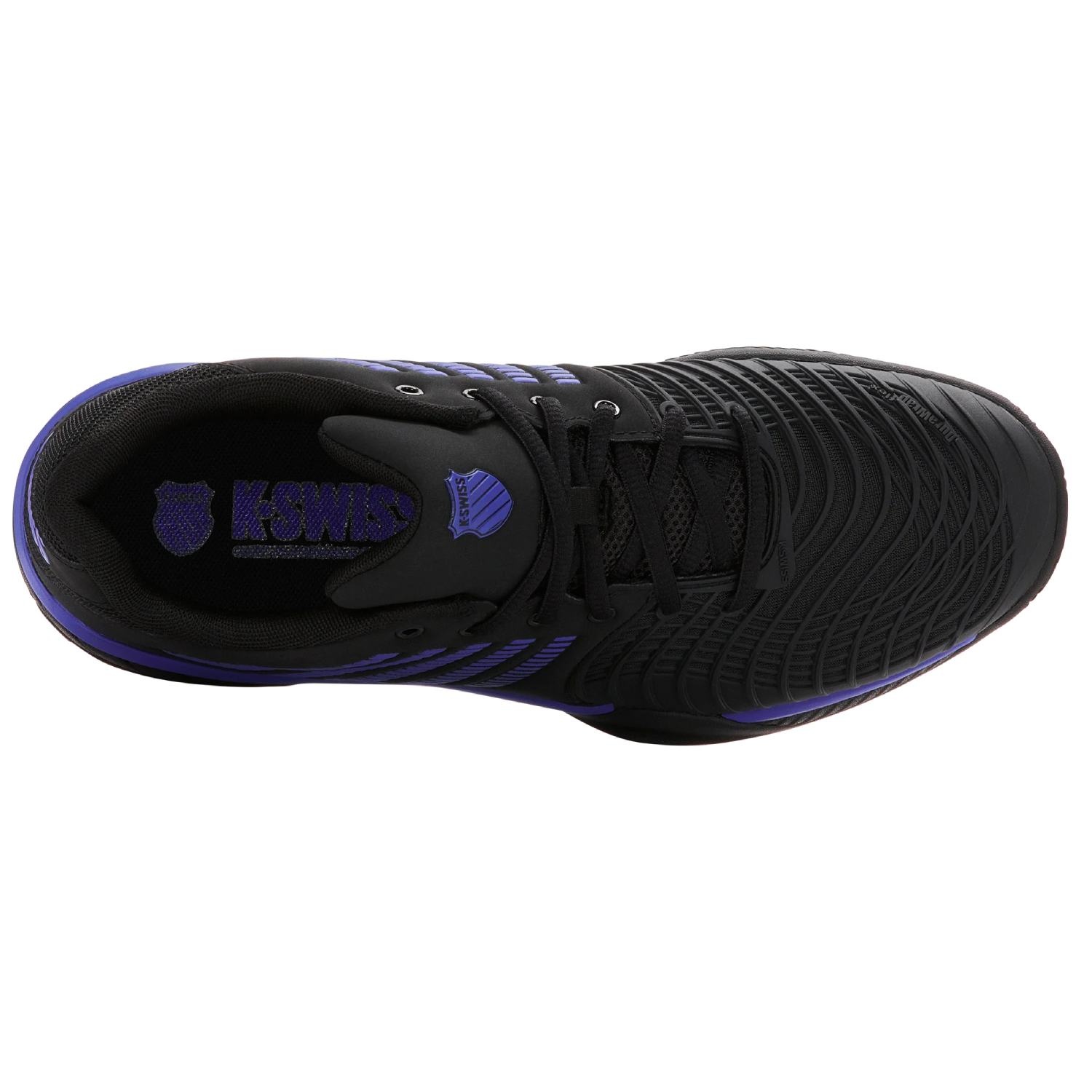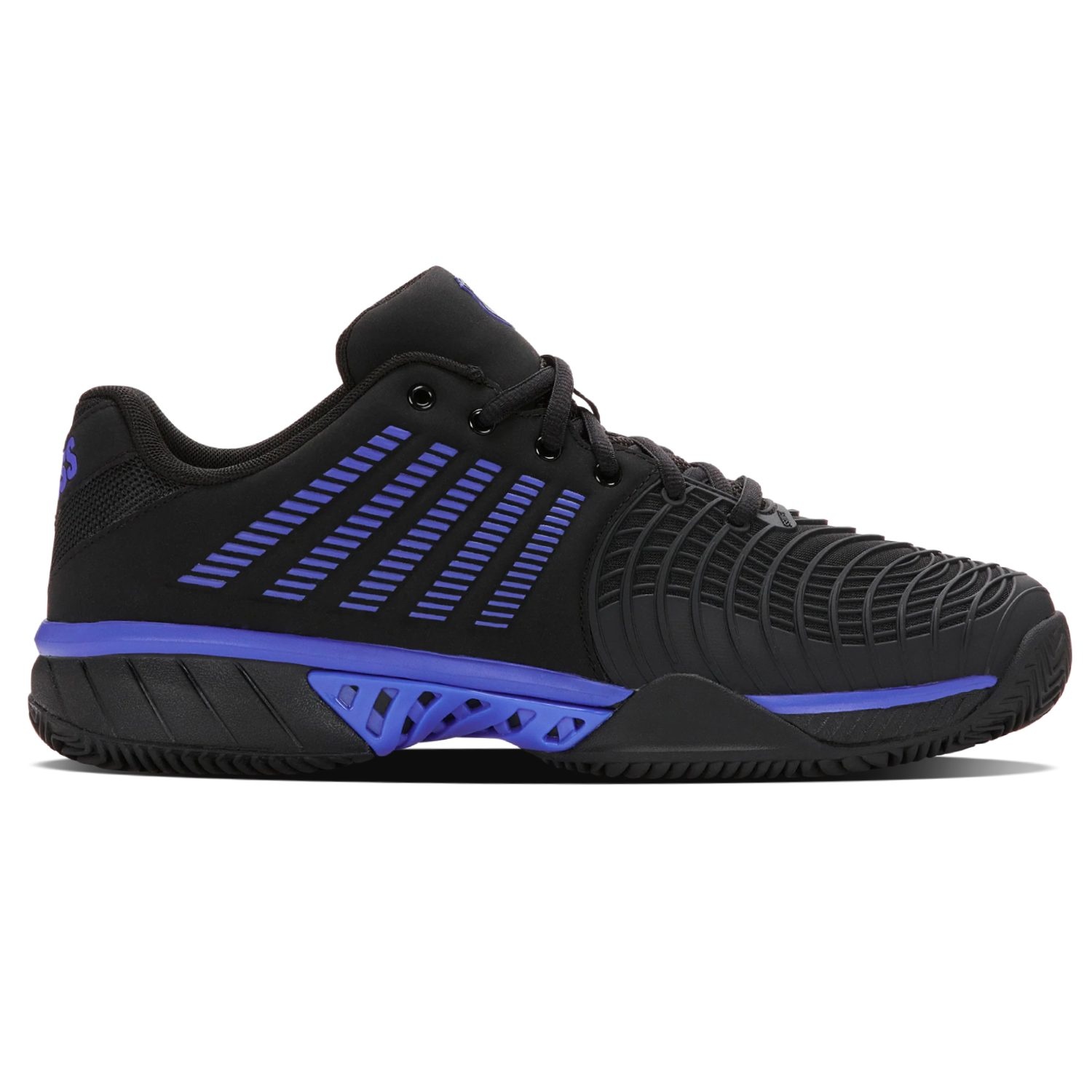 La suola Aosta 7.0 in gomma ad alta densità con motivo a spina di pesce assicura trazione e durata eccellenti su campi in terra battuta , mentre il K-Swiss 180 PSC garantisce stabilità al mesopiede, migliorando sicurezza e reattività nei cambi di direzione.